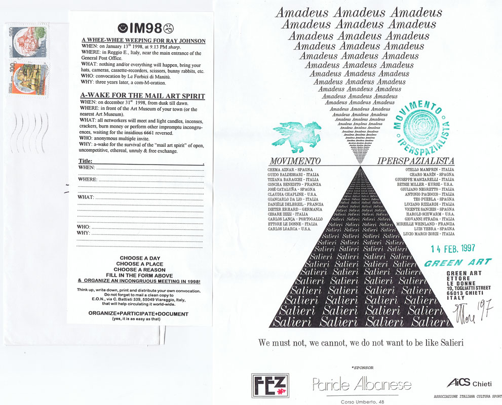 • Aufruf zum gedenken an Ray Johnson, Aufruf zu Mail Art Treffen, Baroni Vittore, Viareggio, 1998