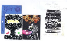 Einzelblätter, einseitig bedruckt (Schwarzweißfotokopien, Deckblätter Farbkopien), in Kunststoffhülle. Mit beigelegter Postkarte, beklebt mit Künstlerbriefmarke, mit handschriftlichem Gruß und angehefteter Visitenkarte.