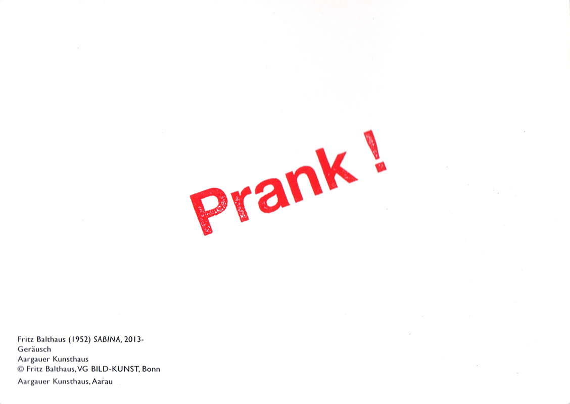 Postkarte, rückseitig mit roter Farbe handgestempelt Prank !